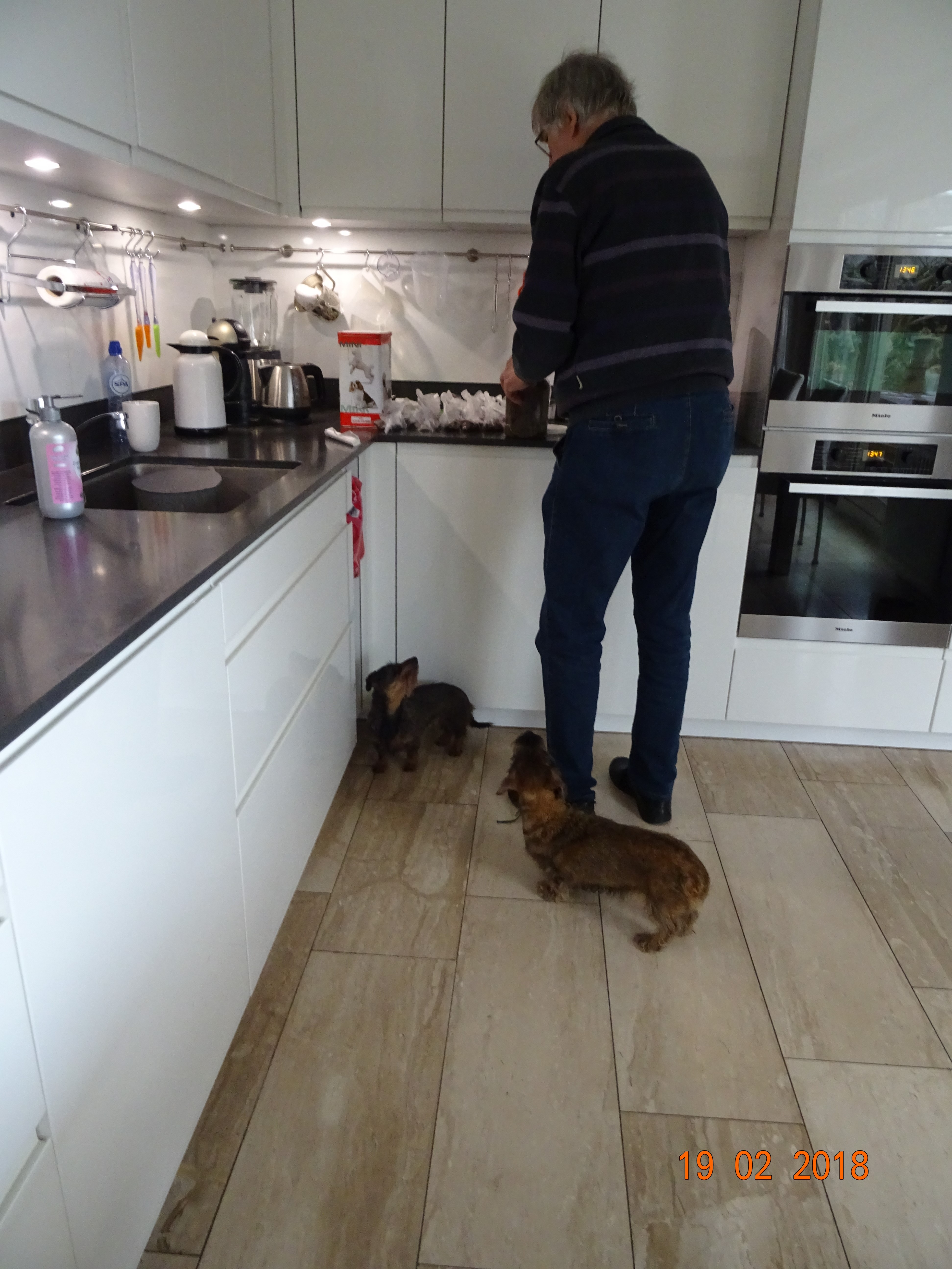 Vakantievoer Bij de oppas moet je ook eten. Baasje maakt afgepaste porties voor alle maaltijden. En dat wordt goed bewaakt door de teckeltjes.