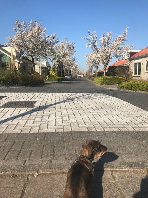 Wij blijven bij iedereen uit de buurt. We gaan  niet naar buiten behalve één keer ‘s avonds in het donker om Ylva uit te laten. Whoopi wou dan altijd meteen na haar Dentastix naar de overkant van de straat haar plas doen. Persé niet in de tuin, waar Ylva geen probleem mee had en overdag ook niet heeft. Na de laatste ronde wil ze slapen, net als Whoopi deed.