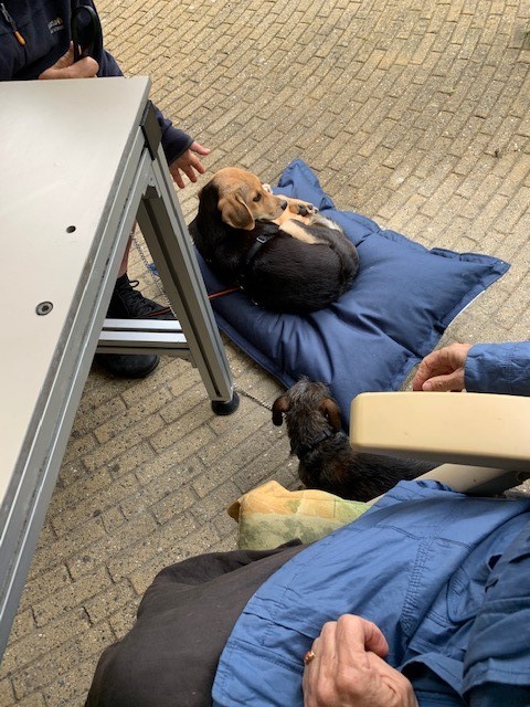 Op die leeftijd kwamen ook beide honden van dochter Wendy en haar man, nadat hun beide teckels overleden waren. Dochter Nathalie heeft ook twee honden, waarvan de laatste, Dot, ook een buitenlander is.