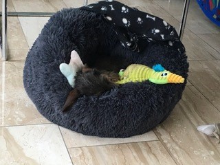 Nog steeds heel gelukkig met haar bedje. Ook ‘s nachts.