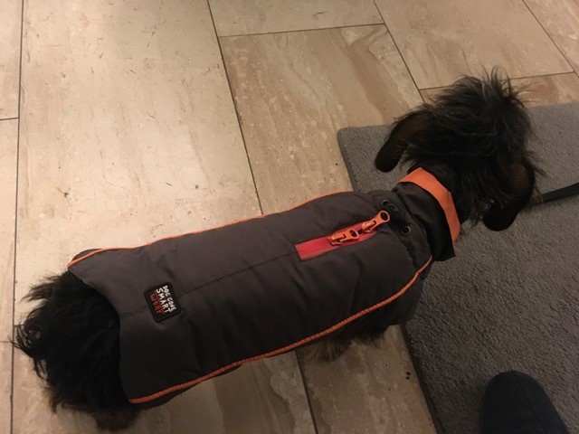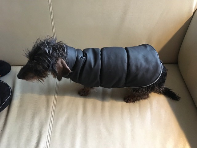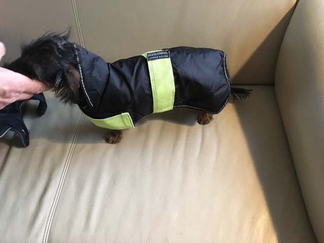 Nu Ylva zo slecht in haar vacht zit, moet ze een truitje aan buiten. Maar bij vochtig weer, regen en of vorst, moet ze een jasje aan met wind en waterdichte buitenkant.