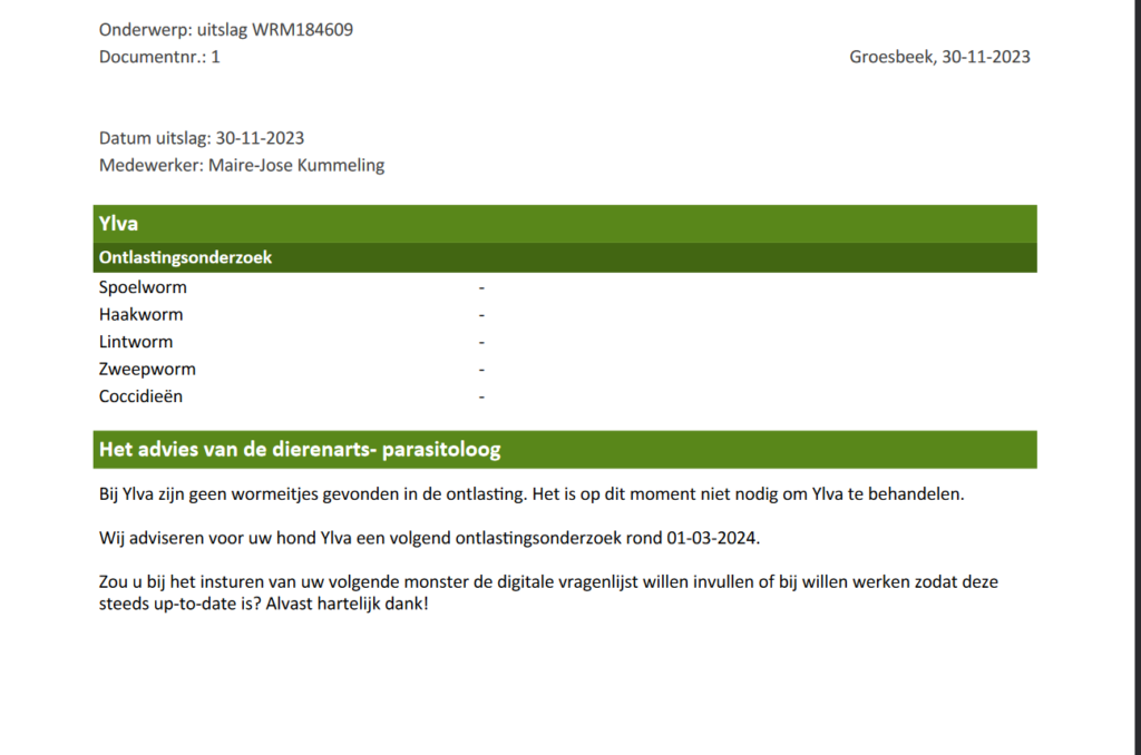 Het was weer zo laat, testset bestellen, poep opsturen en dagje wachten op de uitslag.
