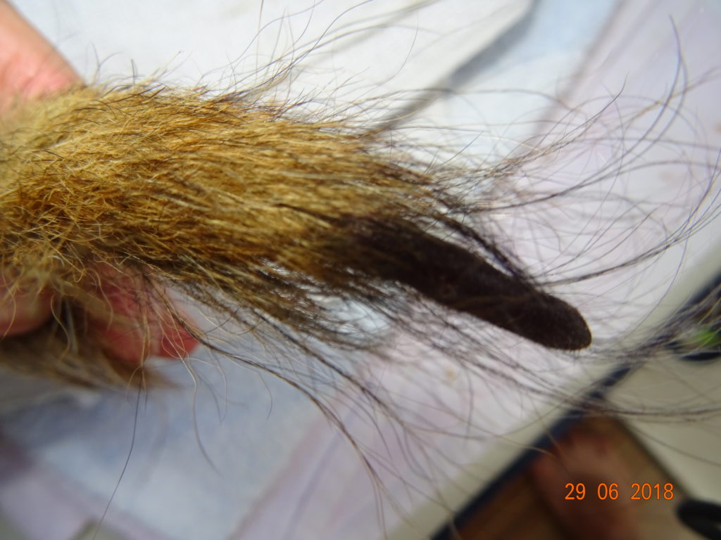 Het lijkt er op dat Whoopi’s staart helemaal kaal gaat worden, haar prachtige volle staart, mijn trots. Ik zie nogal wat teckels met een zielig rattenstaartje, dat had Ylva ook, maar haar staartje wordt eindelijk wat voller.