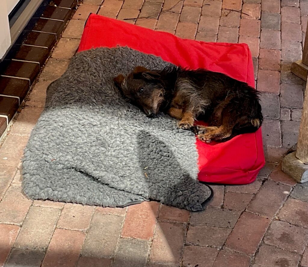 Dat is door baasje duidelijk niet gedaan met de gedachte teckeltje ook buiten daar op te laten slapen.