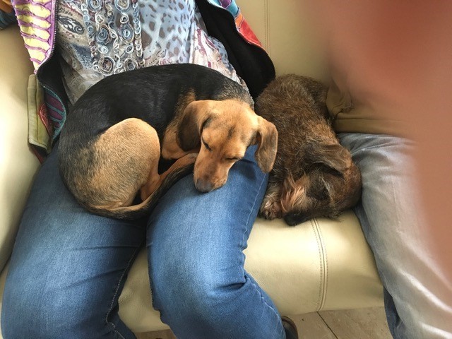 Vanmorgen kwam dochter Wendy met man en hond op de koffie…letterlijk hoor😆