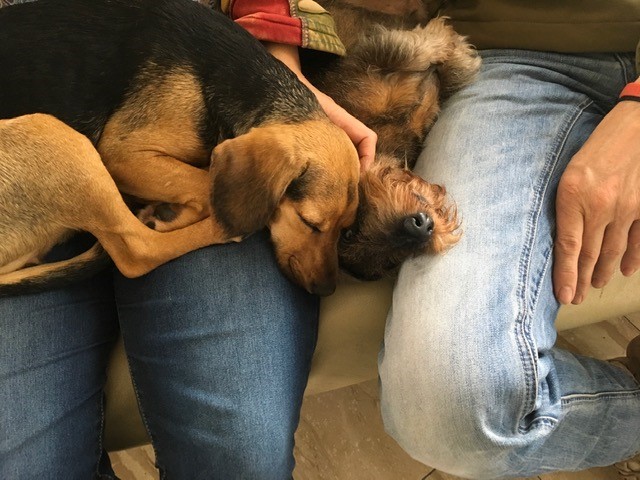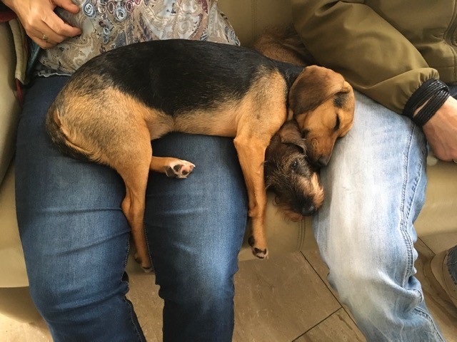 Binnen begon Ylva, vanuit de dichte ren, met veel lawaai Neta bij de ren weg te blaffen. Tot onze verbazing was ze vrij snel stil, ging zelfs slapen.
