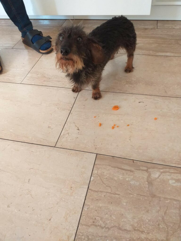 Eerst wou ze opeens geen komkommer meer, nu gaf ik haar het kopje en kontje van een wortel voor in de soep.