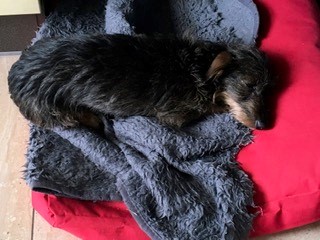 Vanavond kwam ze heel even uit haar bedje en kwispelde zelfs een beetje.