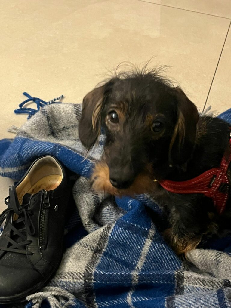 het jonge teckeltje van vrienden, ook een poepverhaal.