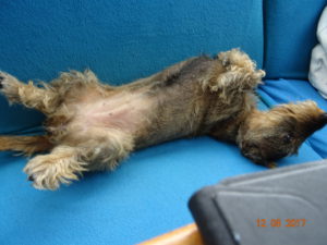 Wat is het toch erg dat dit toch al zo getraumatiseerde hondje tig keer per dag, elke dag opnieuw, totaal van streek raakt door de hond uit de straat die haar zo gebeten heeft.