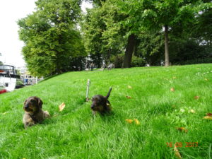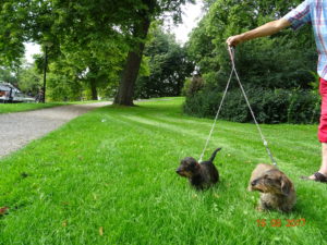 We liggen aan de Prinsentuin in Leeuwarden. In het mooie park is een stuk losloopgebied voor honden. We geven toch maar de voorkeur aan de flexband. Die hebben ze op de foto nog niet aan.