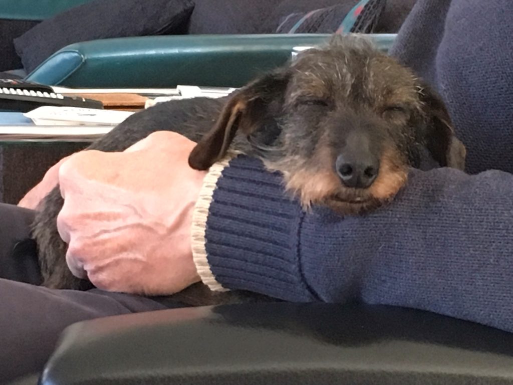 Heerlijk ontspannend bij baasje op schoot.