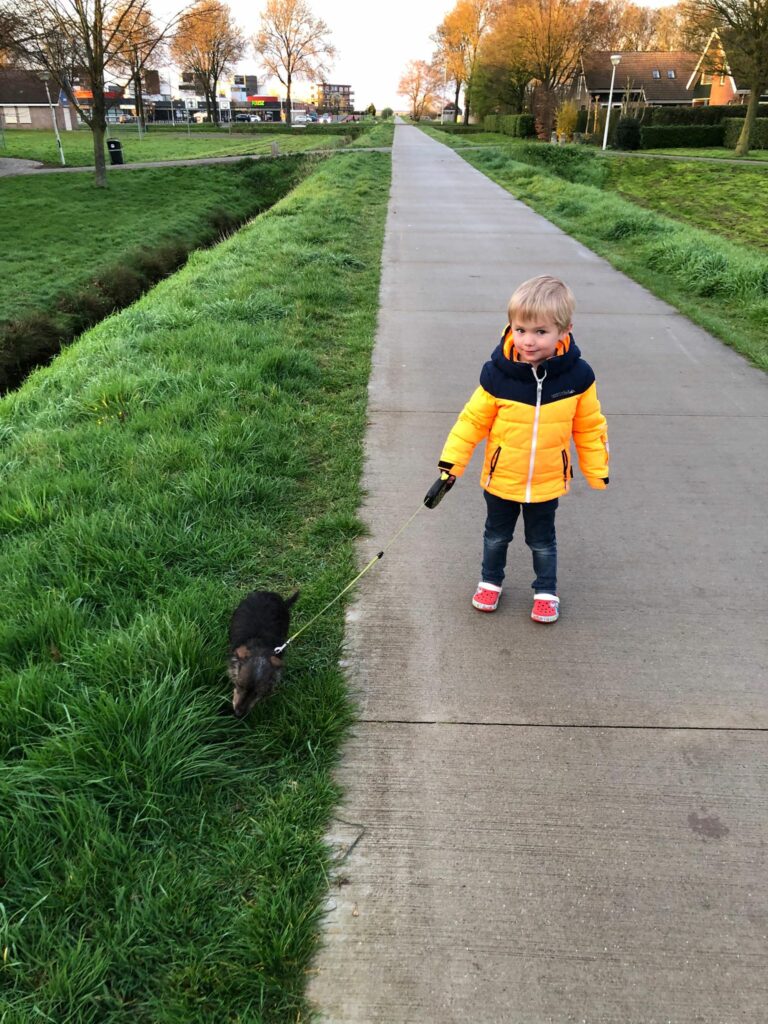 De zoon van de oppas is ze dol op, maar nu is er een ( bijna) vierjarig vriendje bijgekomen, de kleinzoon.