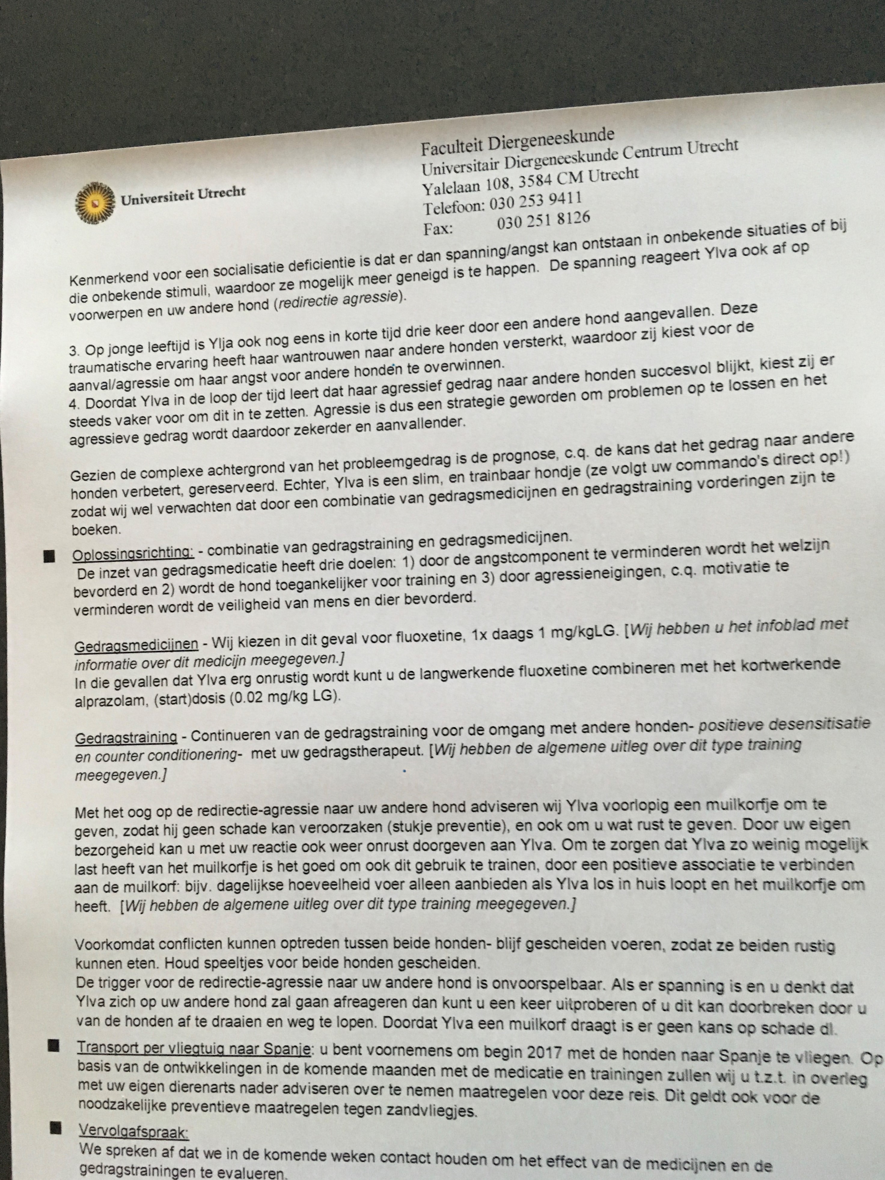 Op 25 oktober 2016 hadden we een afspraak voor Ylva bij de Gedragskliniek voor huisdieren van de UU. Daar is dit verslag van gemaakt.