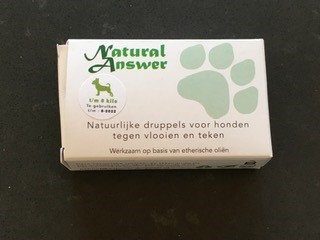 Ze heeft namellijk net haar eerste flesje olie van Natural Answer op haar vachtje gekregen, na een proefplekje. Gelukkig lijkt ze niet allergisch.