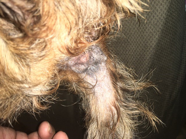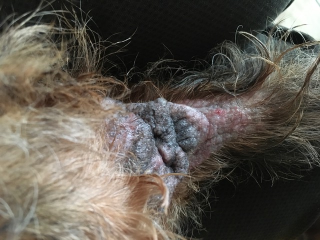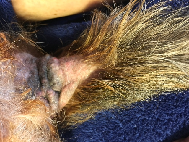 Ze heeft wéér een nare plek onder de aanzet van haar staart en op haar anus.