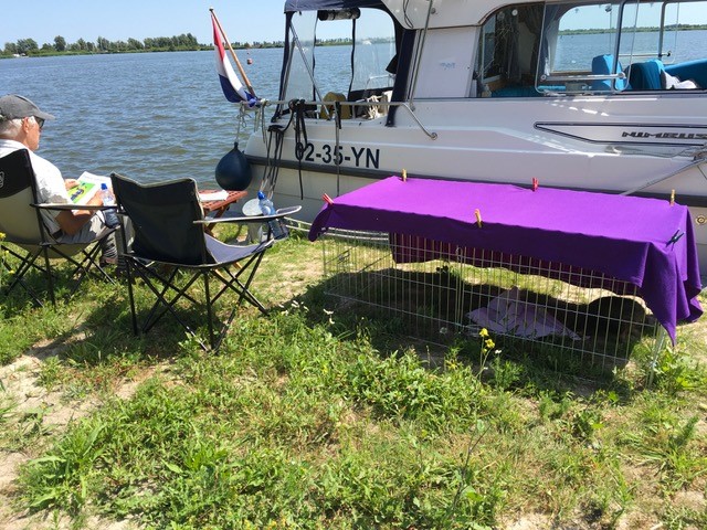 Vanmiddag lagen we even aan een landje op de Brekken.
