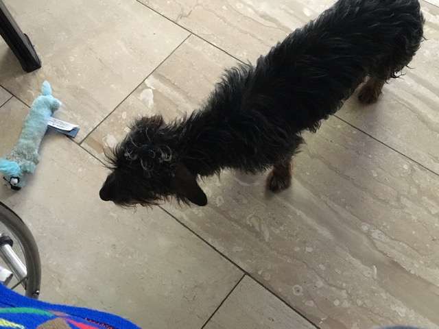 Nadat ze betrapt was, ging ze schuldig kijken. Niet omdat ze begrijpt dat ze iets verkeerds heeft gedaan, maar ze merkt wel dat wij not amused zijn.